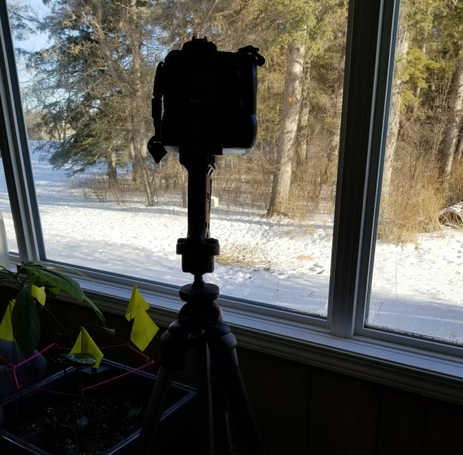 Unfortunately, when the deer came this morning, she could see me through the window, taking the lens cap off, etc, and took off.