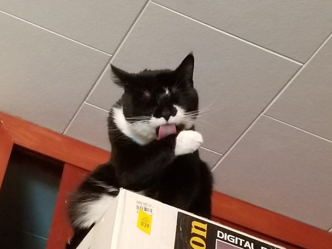 She goes up there when I am in the chair, because she can then jump from the top of the chair into the top shelf in the wall, then up onto the utility shelf in front of the closet.