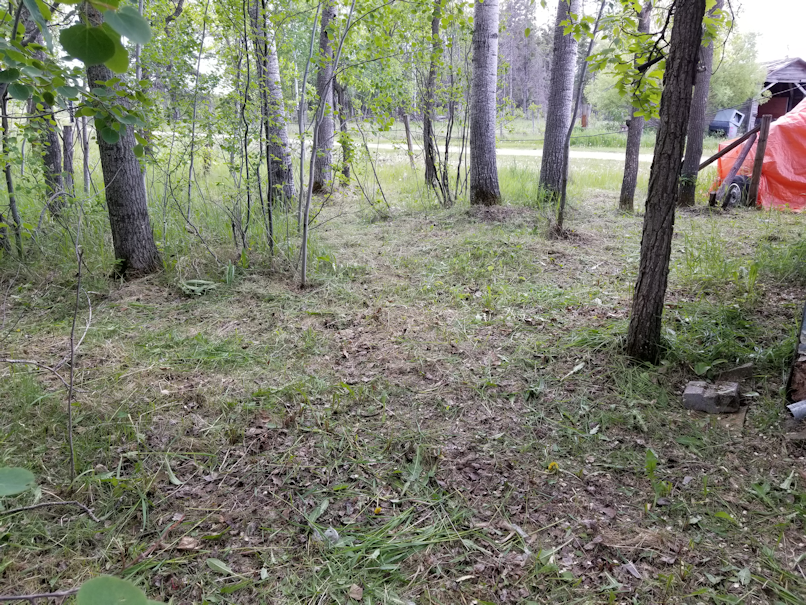 I haven’t finished trimming all the lawn, yet. I got as far as working into the maple grove – and managed to spot some wild strawberries in time to not cut them away! – but after several hours, I had to stop. I got about half the maple grove done, plus the edges of the east, south and west yards. I will continue tomorrow. I’m just in too much pain right now to keep it up.
