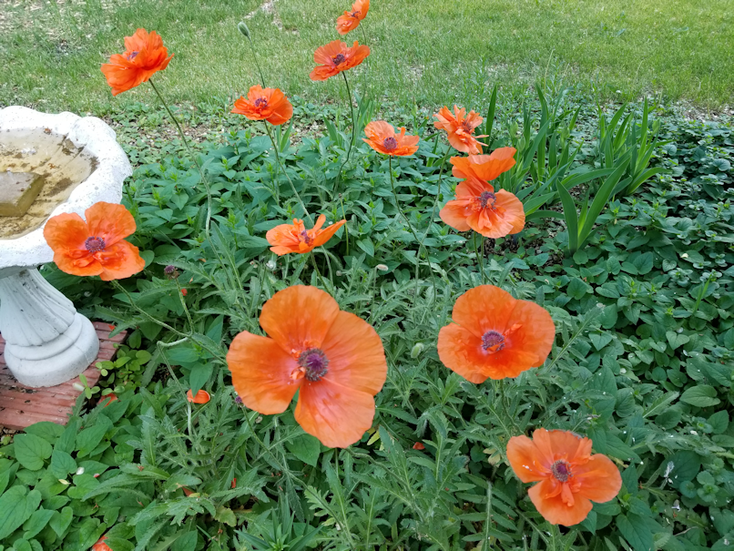 My mother’s poppies are opening up enthusiastically, as is the dwarf Korean lilac.