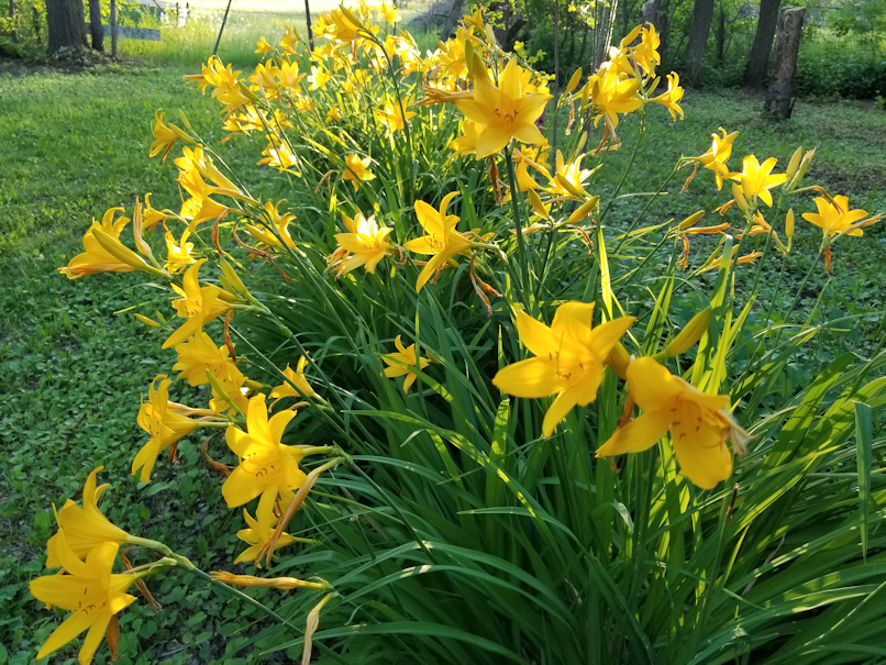 Dave and Keith’s sibling is in the junk pile in the spruce grove, outside our living room window. We sometimes see him playing on top of the pile, as his mama used to do when she was a baby. He’s hard to see through the lilac leaves, but he is quite a handsome grey and white tabby.