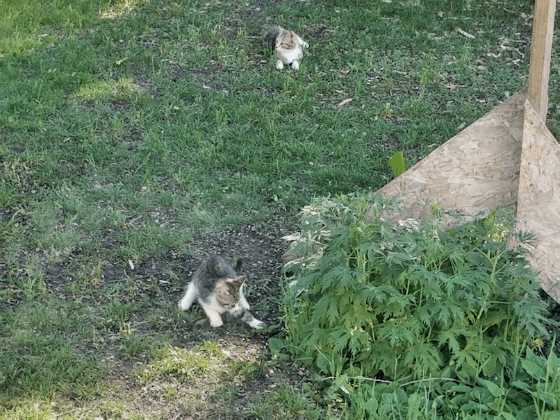 When I went to the pump shack to top up the food and water for the baby in there, I found both bowls still full. The mama has moved her baby. Dang. I was hoping it was too big for her to take though the window.