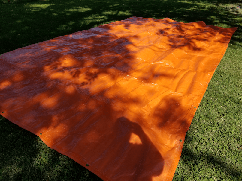Plus, it has grommets, so we can use tent pegs to pin it down.
