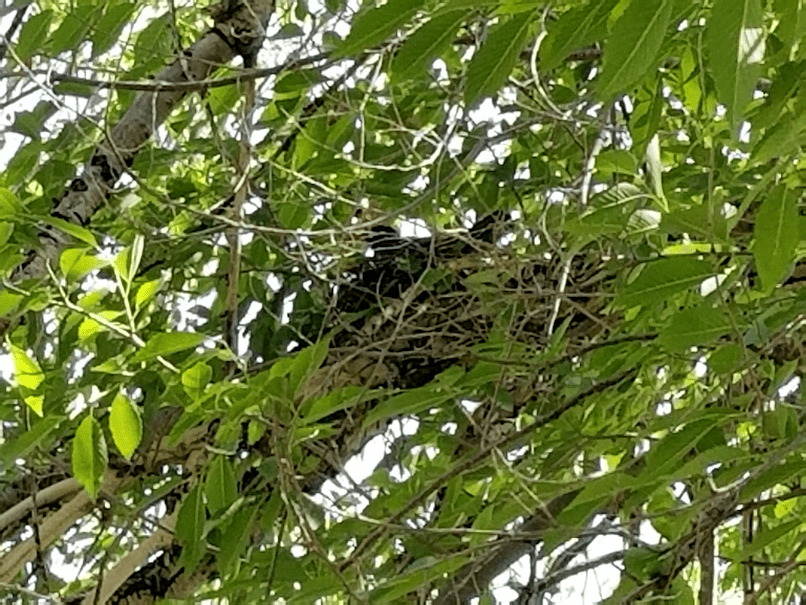 While they were running up and down the trunk, something in a branch caught my eye. It took a lot of staring to figure out what I was seeing through the leaves and twigs.