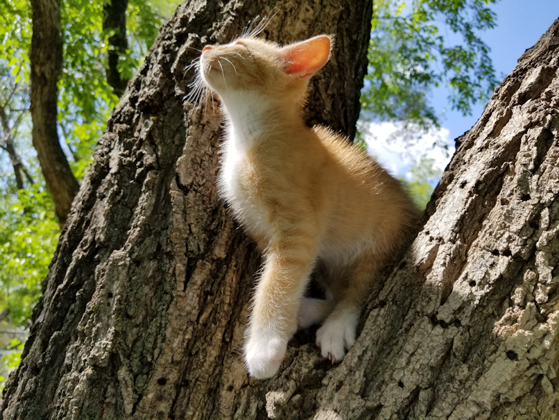 Some of the kittens discovered that the apple trees in the old kitchen garden are not the only trees they can climb!