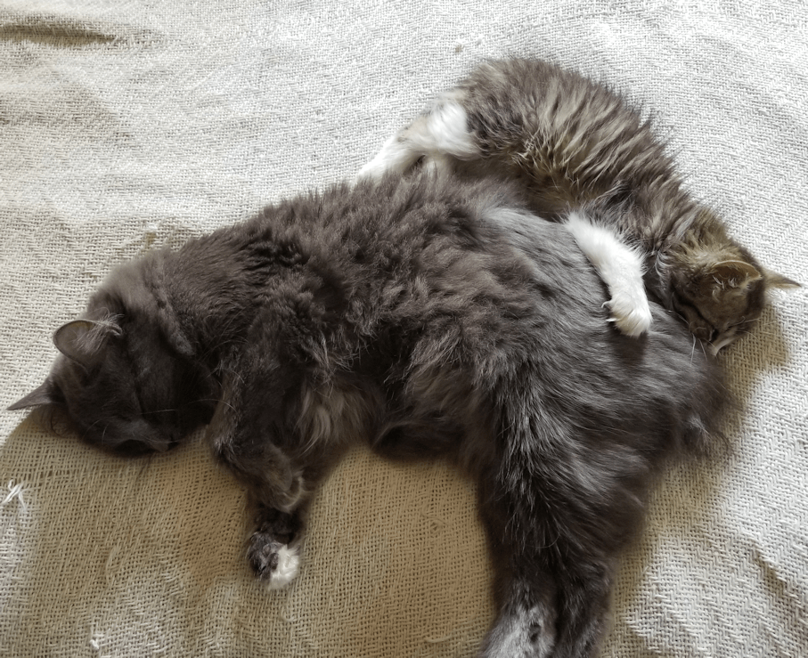 How fascinating that the one cat that was the most aggressive towards the little bean is now the one that is most accepting of him!