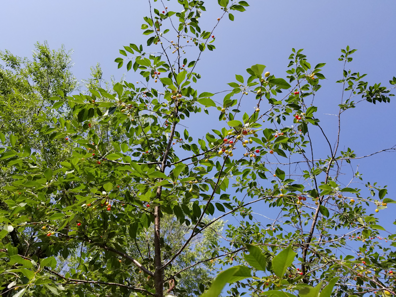 I made a point of looking at the cherry trees along the edge of the spruce grove, where we had so many flowers this spring.