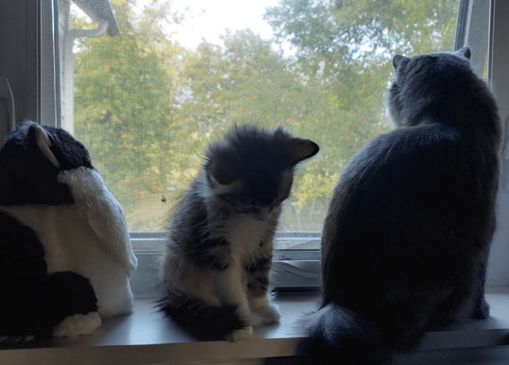 He is now very adept at getting to the window ledge. It’s a miracle the screen is still intact, as he goes after moths on the other side.