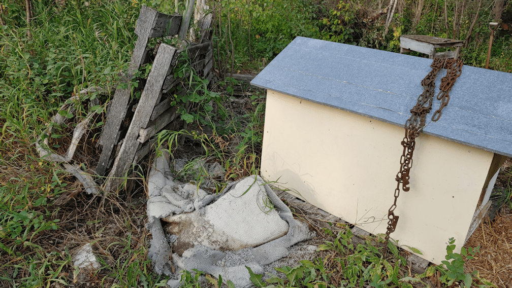 Only to discover that part of it was under the pallet the dog house is sitting on.