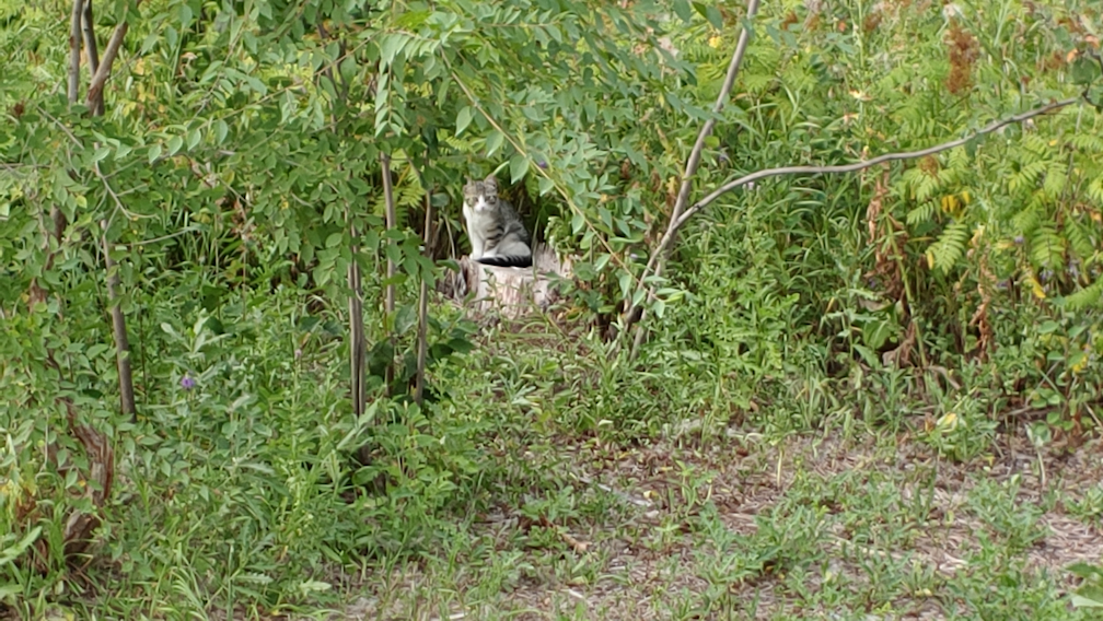 As you can see, among the grasses beyond the carpet, I had kittens keeping me company. They were all over the place – and so was junk pile cat! – while I was working.