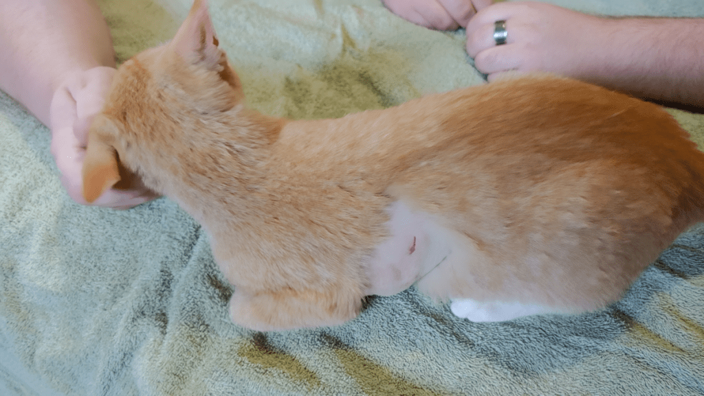 The vet made an incision at the top, but also found the entry wound in his armpit area and opened that up a bit, to allow for drainage, should there be a need.