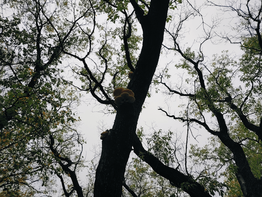 These mushrooms are all growing only on maples. None on the elms, spruces, willows, etc. Just maples.