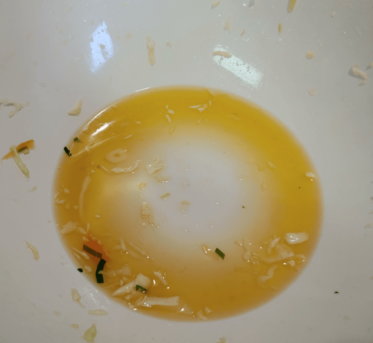 The instructions I got included the use of a food processor, which I do not have and do not want. I did try to use the slicing side of my box grater for the carrots (which did not work) and for the cored cabbage (which worked for most, and I used a knife for the rest), but if I do this recipe again, I won’t bother. I’ll just use a knife.