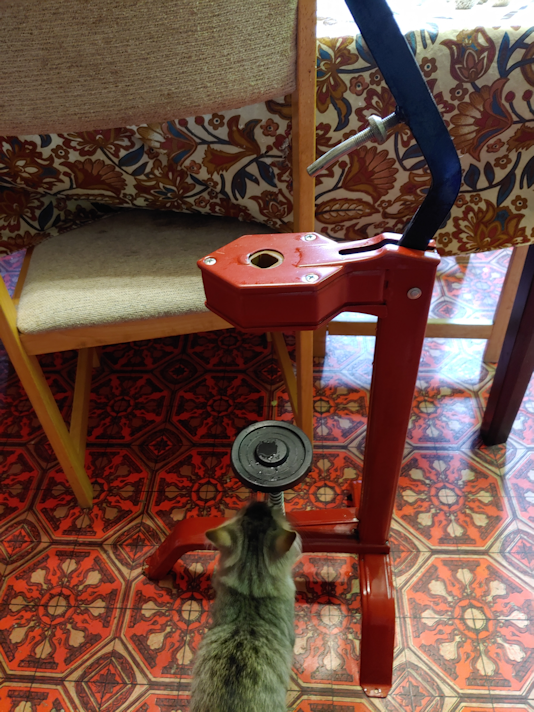 How the corker works is, a bottle is placed on the base, where Dave is sniffing. It’s on a spring, so it can be pushed down to fit the bottle under the corker. The underside has a curved metal plate as a guide, and a slightly indented area the bottle top fits in. The cork is then dropped into the hole at the top. As the lever is brought down, the cork is compressed and the bottle is locked in place, then the cork is pushed down into the bottle. The depth of the cork can be adjusted via a screw on the metal piece that pushes the cork down.