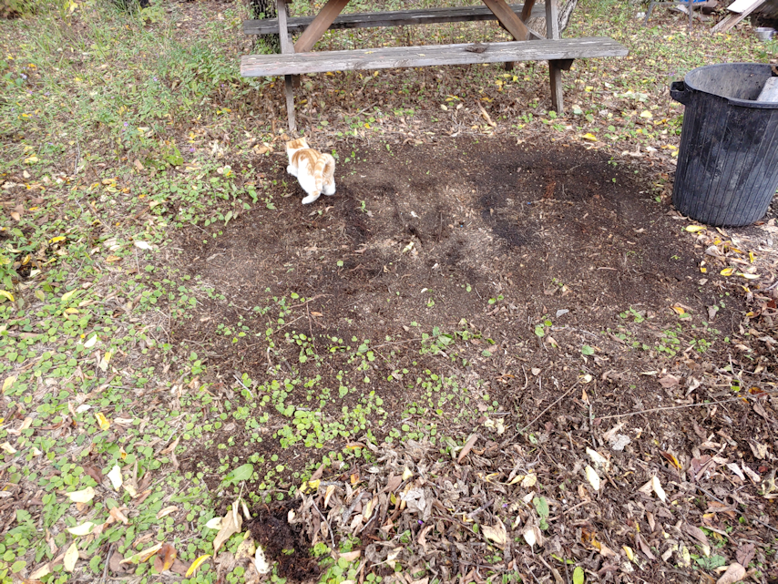 One of the things done earlier was the removal of the tarps we’d put over where we hope to plant a garden next year.