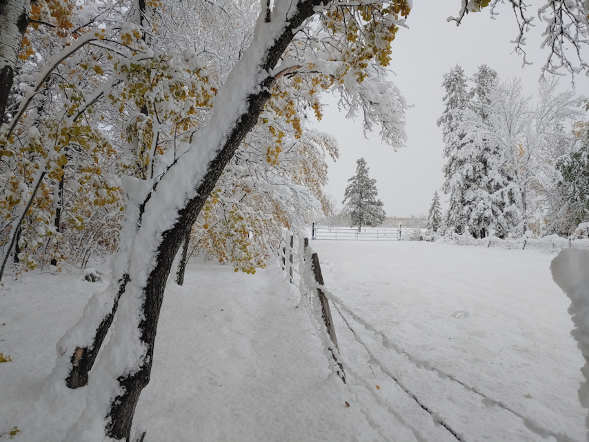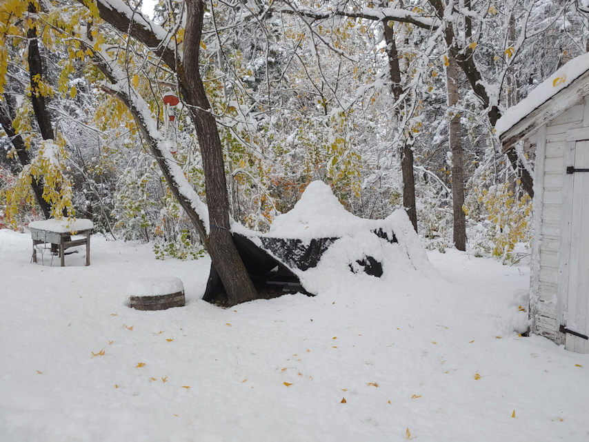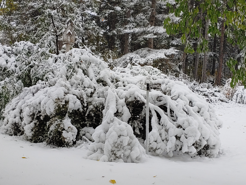 As I look at the long term forecast, I see that a week from now, we’re supposed to get as high as +12C. !!! The rest of the forecast is more typical for an October in our area, so we will have a chance to clear up the damage and finish putting things away for the winter.