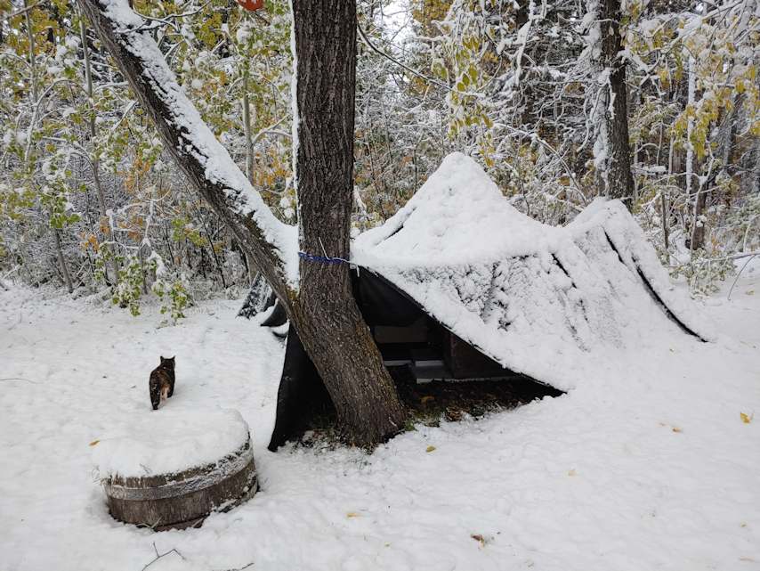 I was pleased to see how well the shelter over the old dog houses held up. An extra place for critters to hide out and keep at least a little bit warmer.
