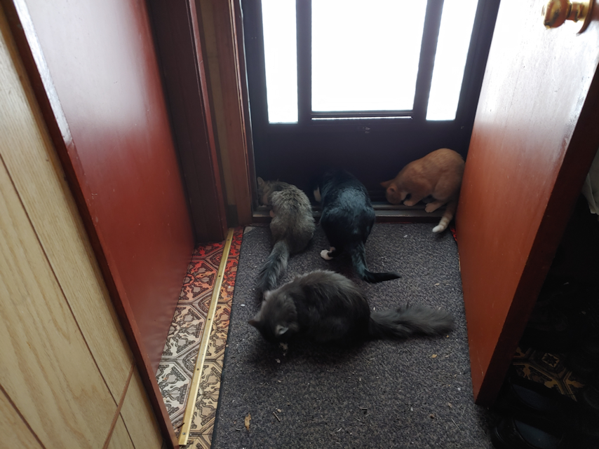 The inside cats were very fascinated by the snow and smells as the door as we were going in and out!