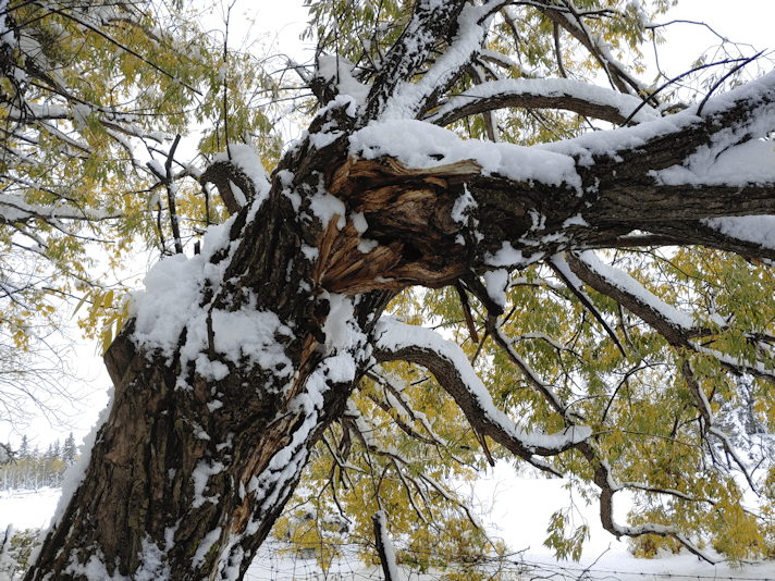 The tree outside our kitchen window had branches drooping right at the door. One of those branches ended up breaking.