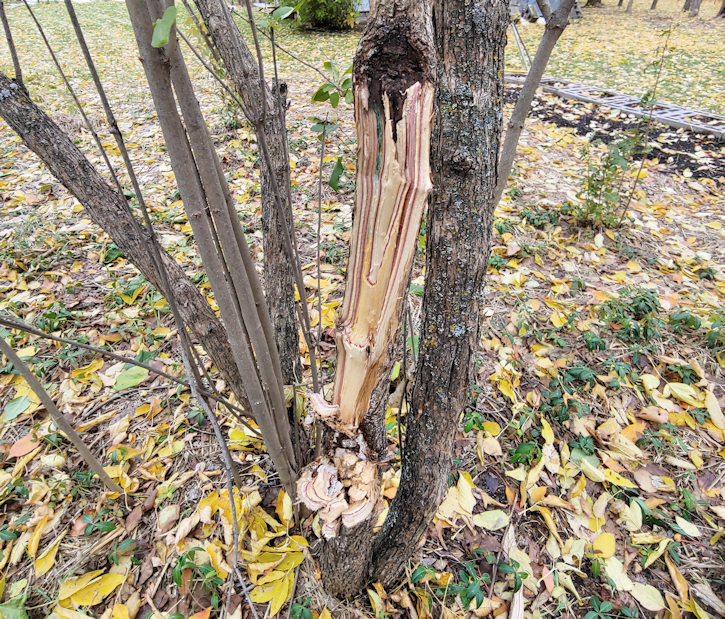 I also cut away the broken branch from the chokecherry tree, but didn’t take a photo. There is quite a bit of a tear on the rest of that part of the tree, but I think it should survive okay.