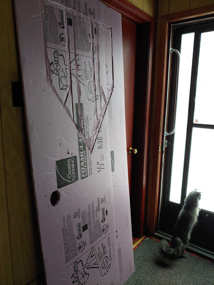 That is not something we could do with the main entry, since we are going in and out all the time. The insulation would have to be affixed to the inner door somehow, and it would have to be something that would let us remove it easily in the spring.