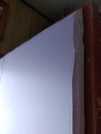 I then measured, marked and carved out what I hoped would be enough of the insulation that the frames of the window sections would fit, allowing the insulation to be flush against the door.