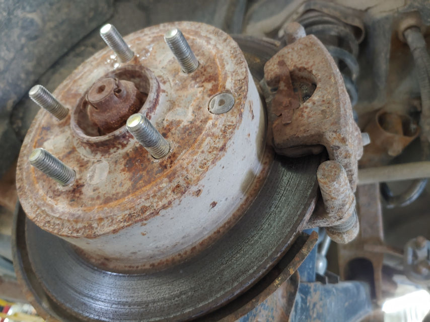 While he was installing the brakes, he found one of the calipers was completely seized. He had to replace it before he could finish installing the brakes.