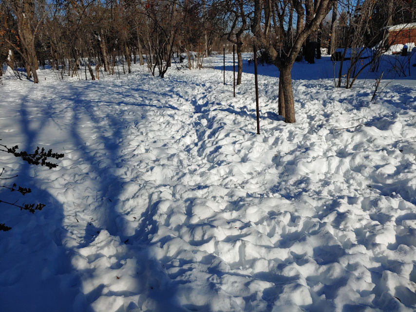 All that churned up snow? It extends through the trees in the back, as well.