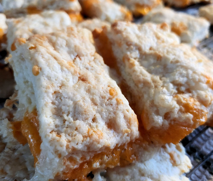 Sourdough biscuits with a blend of both white and orange old cheddar cheese. They are the lightest, flakiest biscuits I’ve ever had! I don’t know where my daughter found the recipe, but it’s a keeper!