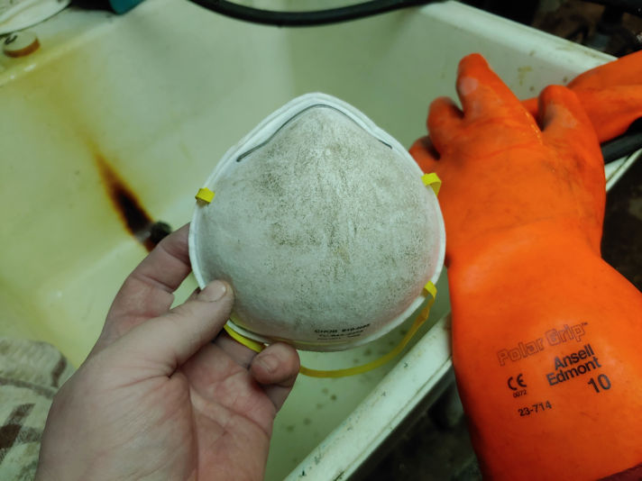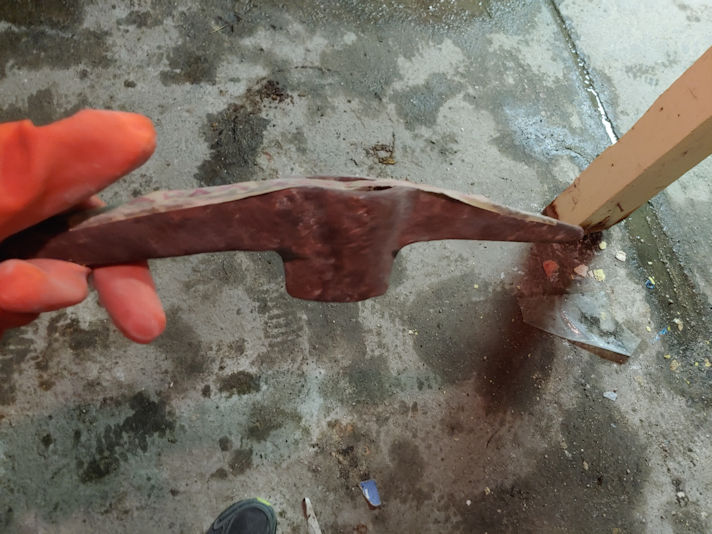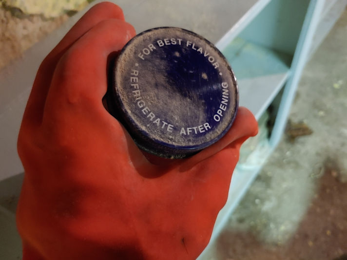 Oh, and those orange gloves? I found those in one of the shelves while my brother was working on the drain. He ended up using them after the latex-type gloves he’d brought along kept tearing. These orange gloves were in a metal bin along with a new replacement handle for a hammer, a drum stick (just the one!), a steak knife, and a variety of tools, pliers and rusty old nails.