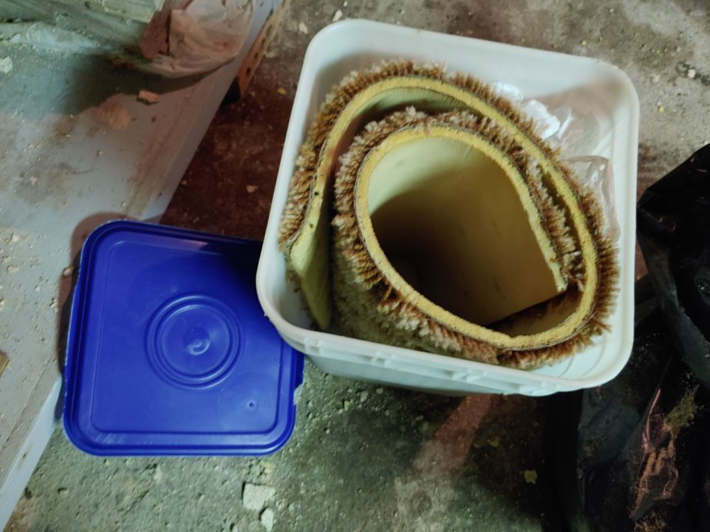 The 5 gallon buckets are… paint? At least one of them is actually labelled as paint, but I didn’t try to open either of them.
