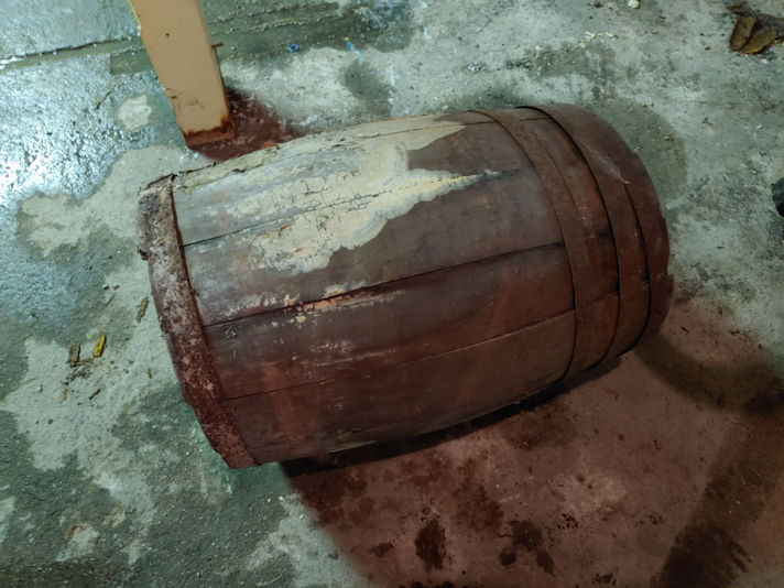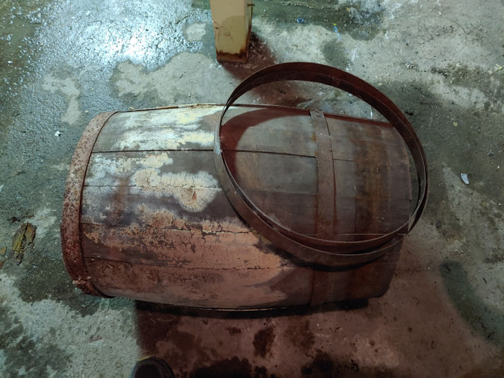 The barrel, unfortunately, has a lot of water damage to it. As I moved it around to look at it, two of the bands fell right off! I was able to hammer them back on again, but it doesn’t look like this barrel can be salvaged at all. What a shame!