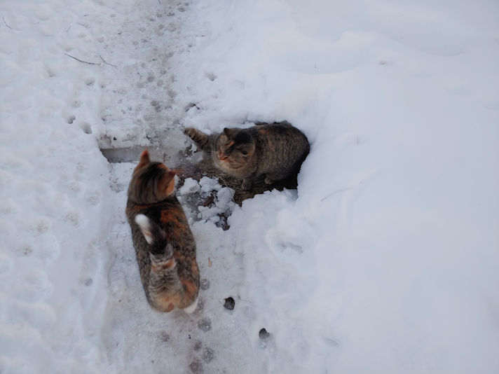 Beep Beep tucked herself right in there, and Two-Face came over to investigate. Beep Beep didn’t like that!