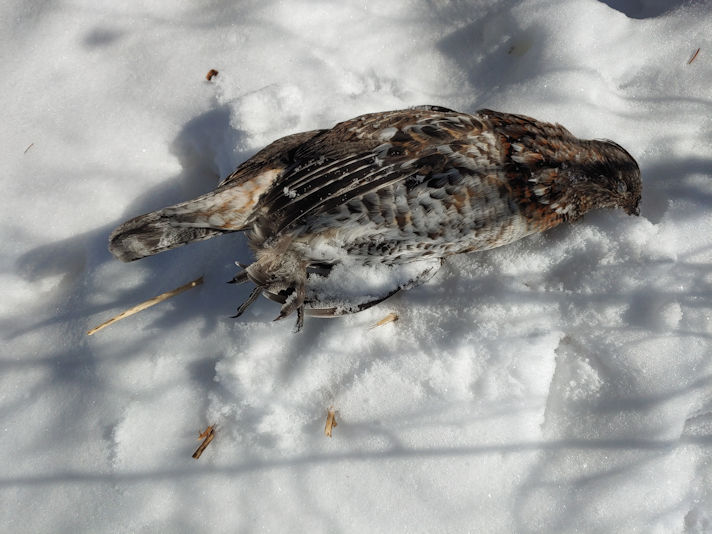 I left it by the spruces, knowing that nothing goes to waste in nature, and something would get a good meal out of the bird.