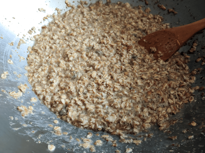 My favourite additives to my basic bread recipe is thick cut oats, chia seeds, ground flax, sunflower seeds and pumpkin seeds. The sunflower and pumpkin seeds are roasted and salted, and this time I took more time to grind them in a mortar and pestle to break them up. The whole seeds and bigger pieces tend to fall out while the dough it being kneaded. I let it all soften in boiling water first, which makes a much nicer texture in the bread. I doubled the basic 2 loaf recipe again, too.