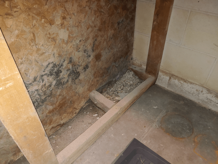We have a moldicide spray that we’ll use on that plywood wall, too.