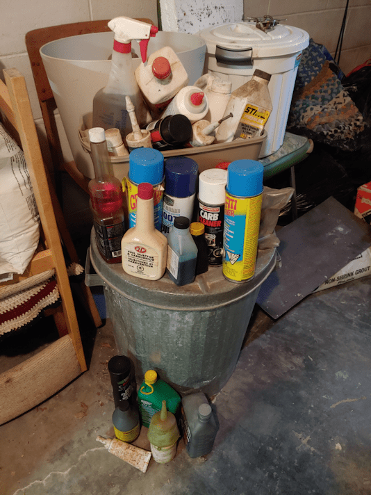 Where I found it full of various liquids, gels, greases and… mystery liquid. I’ve been putting all the small containers in a small bin I found, only to find it was nowhere near large enough.