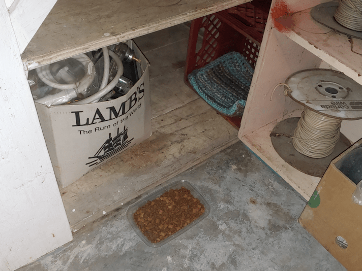 After this, I headed outside to do my rounds. The skunks had been back, going knocking a few things about. We didn’t refill the food bowls last night, so there wasn’t much there for them to steal.