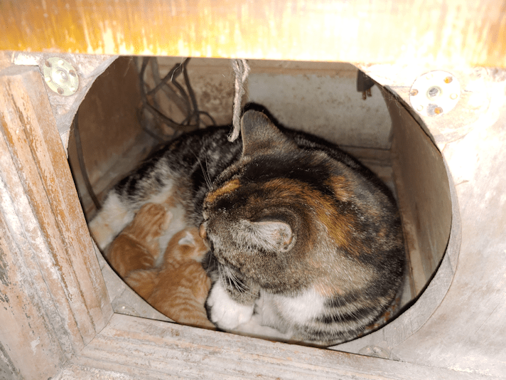My morning routine now includes checking on the mamas in the basement. I wanted to see how Butterscotch and her babies were doing inside the old radio she decided to give birth in.