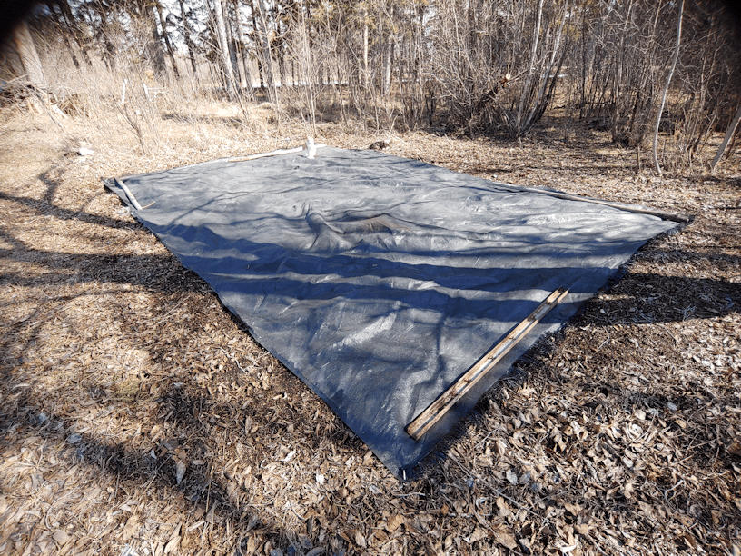 On the topic of planting things, I was able to cover a future planting area with black tarp this morning.