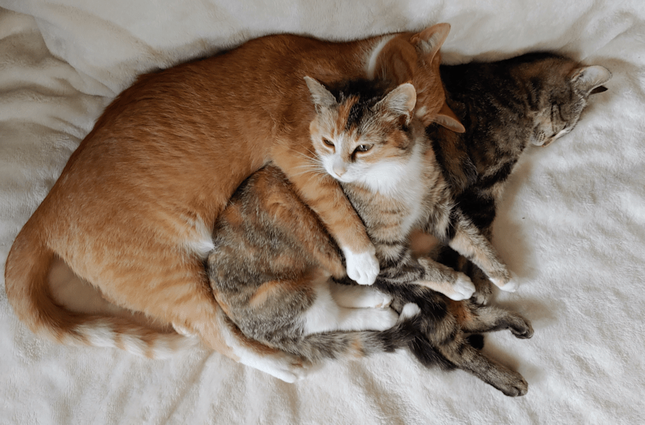Two Face is getting all of the love from her siblings as she recovers from her visit to the vet.