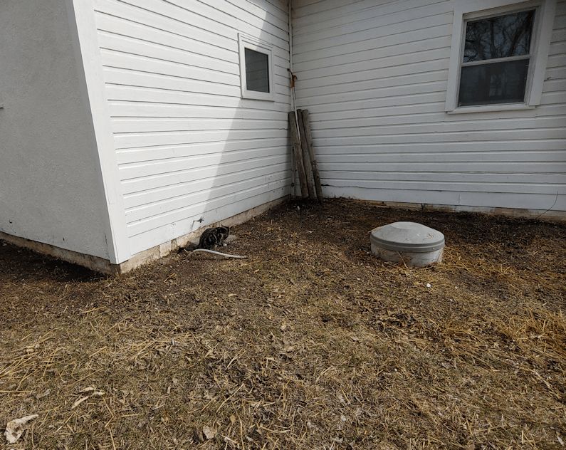 When our septic failed earlier in the year, and we had to get the tank emptied, I had moved the straw covering the lid over to the side, on top of snow and other straw. As I cleaned away the straw, I uncovered a snow drift! :-D
