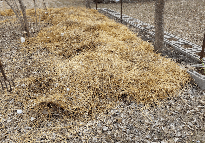 That’s okay. The straw got moved over to the old kitchen garden, and the straw that was stuck in clumps of snow and ice will just add moisture to the garden. Plus, some of it was already starting to decompose quite nicely. Bonus! :-)