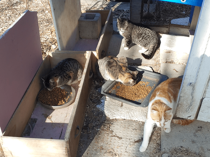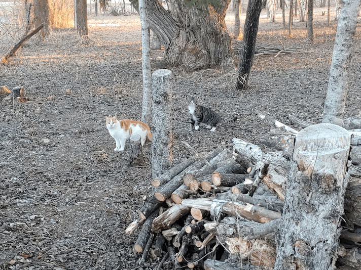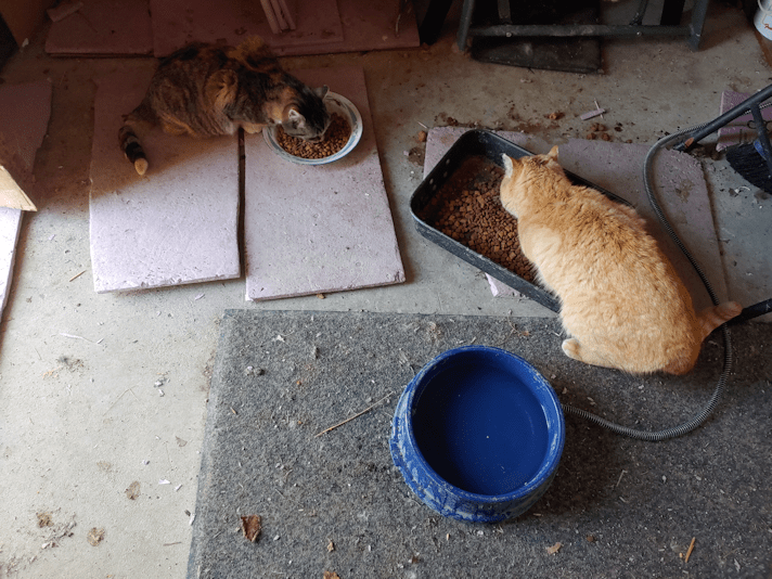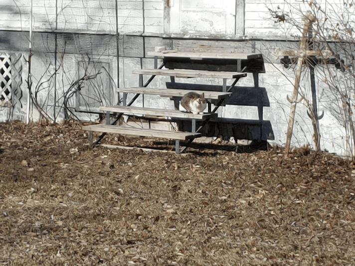Usually, when I add food to the outside bowls, Junk Pile and Pump Shack cats are pretty skittish about eating until I leave.