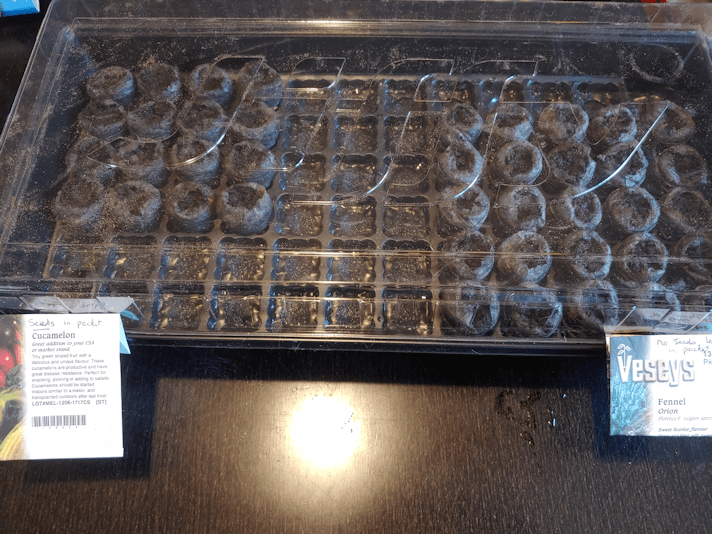At about 4 weeks before last frost (give or take a few days, depending on which town I look at), I had 2 things to start. Cucamelons and fennel.