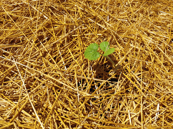 That done, I was able to use the grass clippings I’d collected while mowing in the outer yard. Only 2 days, and the core of the grass pile was already composting and getting so hot, I was almost burning my hands! We used up almost the entire pile to continue mulching around the sunflowers.