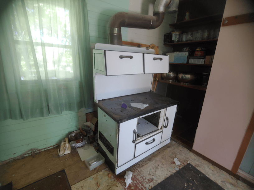 There wasn’t much left to take out of there. Most of it was behind the wood burning cook stove.