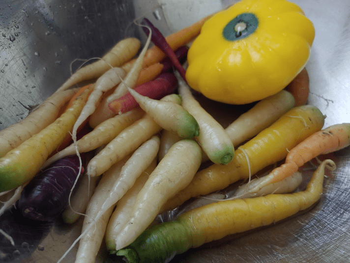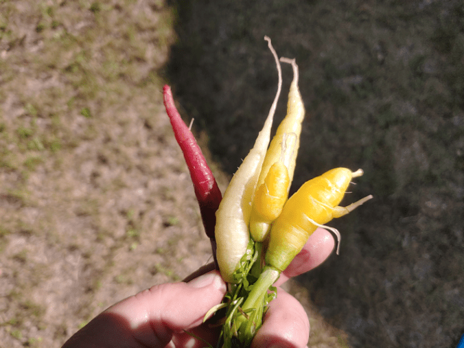While checking on the garden beds and doing a bit of weeding, I pulled a few baby carrots.