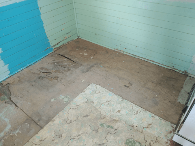 It’s amazing that this stove was going almost all day, every day, and the kitchen never caught fire. There is NOTHING protecting the walls and floor.