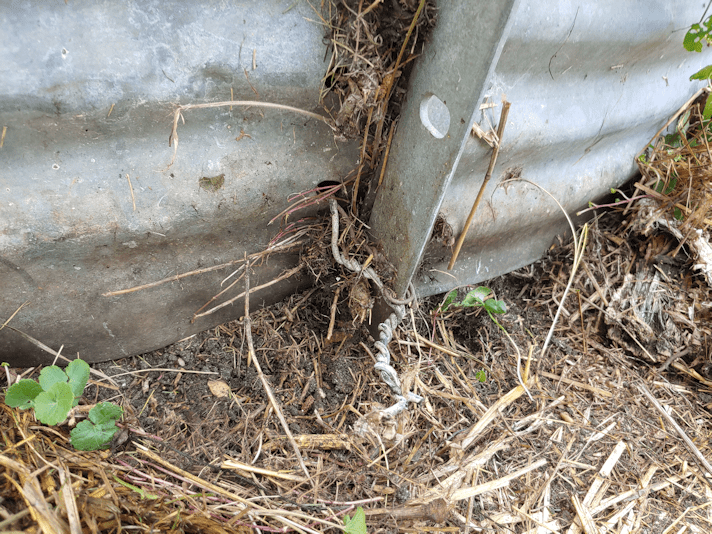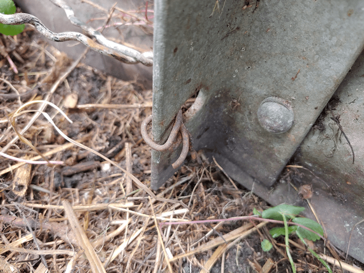 It’s held together with a combination of electrical wire and barbed wire (without any barbs).